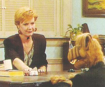 ALF gets until the next morning to prepare his case. Brian’s the bailiff, and he announces Kate, who comes in from the kitchen with a meat mallet as a gavel.