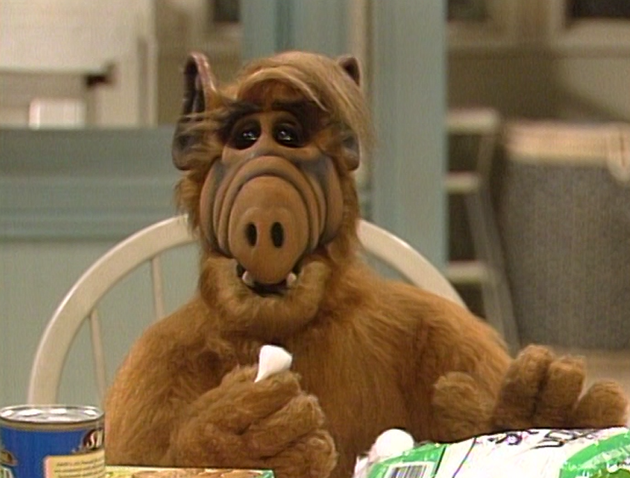 In the kitchen, Lynn comes in from shopping and ALF asks if she got his breath mints. She says she forgot so ALF breaths on her. She says she'll go get some. She did remember to get him his cotton balls. When asked why he wants them he says he's been experimenting new menu ideas... he's eating it