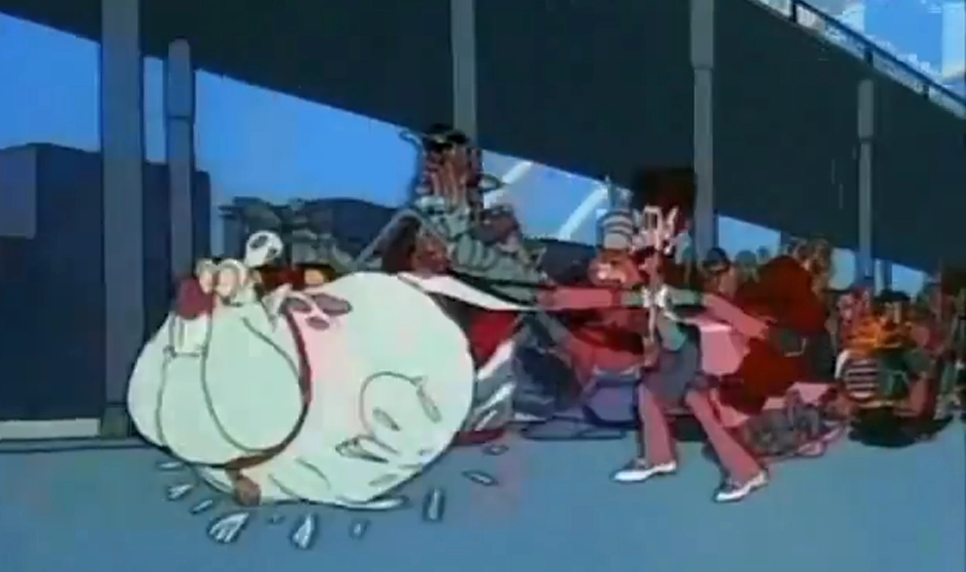 - Gordon says “It’s only a cartoon,” breaking the fourth wall.