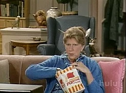 - After ALF lets himself in through the door, you can see Mrs. Ochmonek eating a bag of Jolly Time popcorn, meaning Alien Productions may have used product placement.